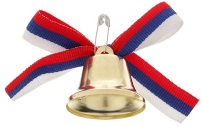 Колокольчик с бантом на выпускной - самый необходимый аксессуар на “Последний звонок” в школах и лицеях. Колокольчик крепится к одежде при помощи булавки. Украшен лентой расцветки “триколор”. Высота колокольчика - около 3,5 см.