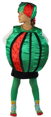 | Комплект | Зеленая жилетка, с завязками на талии, к ней пришита ягода на грудь, шапочка с листочком. |