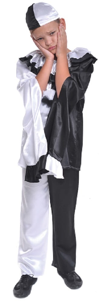 Самый грустный герой «Золотого Ключика» - романтичный Пьеро. Костюм Пьеро подростковый создан для роли этого меланхоличного персонажа. В черно-белом костюме Пьеро ваш ребенок блестяще выступит на сцене. Этот вариант особенно примечателен наличием двух головных уборов.