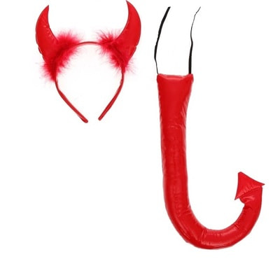 Набор Чертик, 2 предмета завершит ваш костюм дьявола на Хэллоуин. Рожки и загнутый хвост с острым кончиком придаст вам озорной вид. Набор Чертик подойдёт и для участив в сценических постановках. Такой набор способен сделать из обычной одежды чёрного цвета полноценный образ черта.