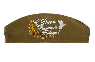Пилотка С днем Великой Победы детская – оригинальный выбор на 9 мая для вашего ребенка. Пилотка выглядит как традиционный головной убор советского солдата, а надпись и рисунок придают ей необычный и праздничный вид. Детскую пилотку можно сочетать как с военной формой или гимнастеркой, так и с обычной одеждой.
