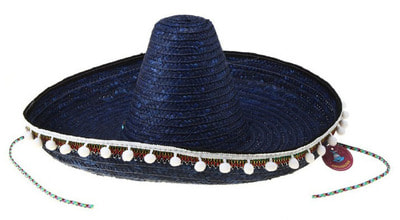 Синяя широкополая шляпа сомбреро изготовлена из соломы и украшена текстильным декором. Диаметр шляпы около 50 см, высота - около 20 см. Сомбреро – яркая деталь карнавального костюма для праздника или вечеринки.